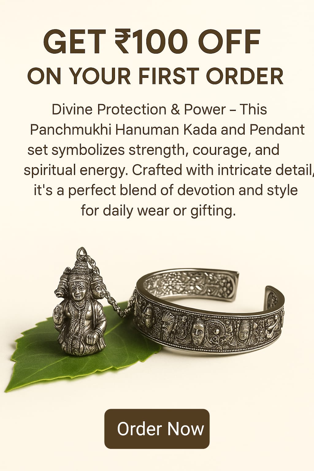 You will receive one Premium 5-Mukhi Hanuman Kada and one Hanuman Pendant with Chain — a complete devotional power set designed for daily wear and spiritual strength.